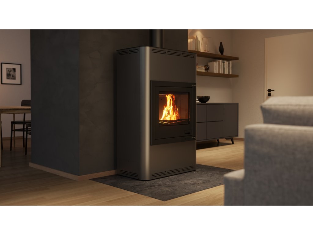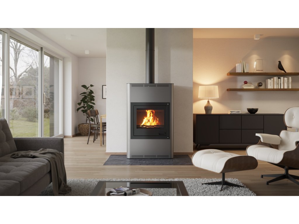 HS FLAMINGO krbová kamna AQUAFLAM 25 s výměníkem automatická regulace šedá