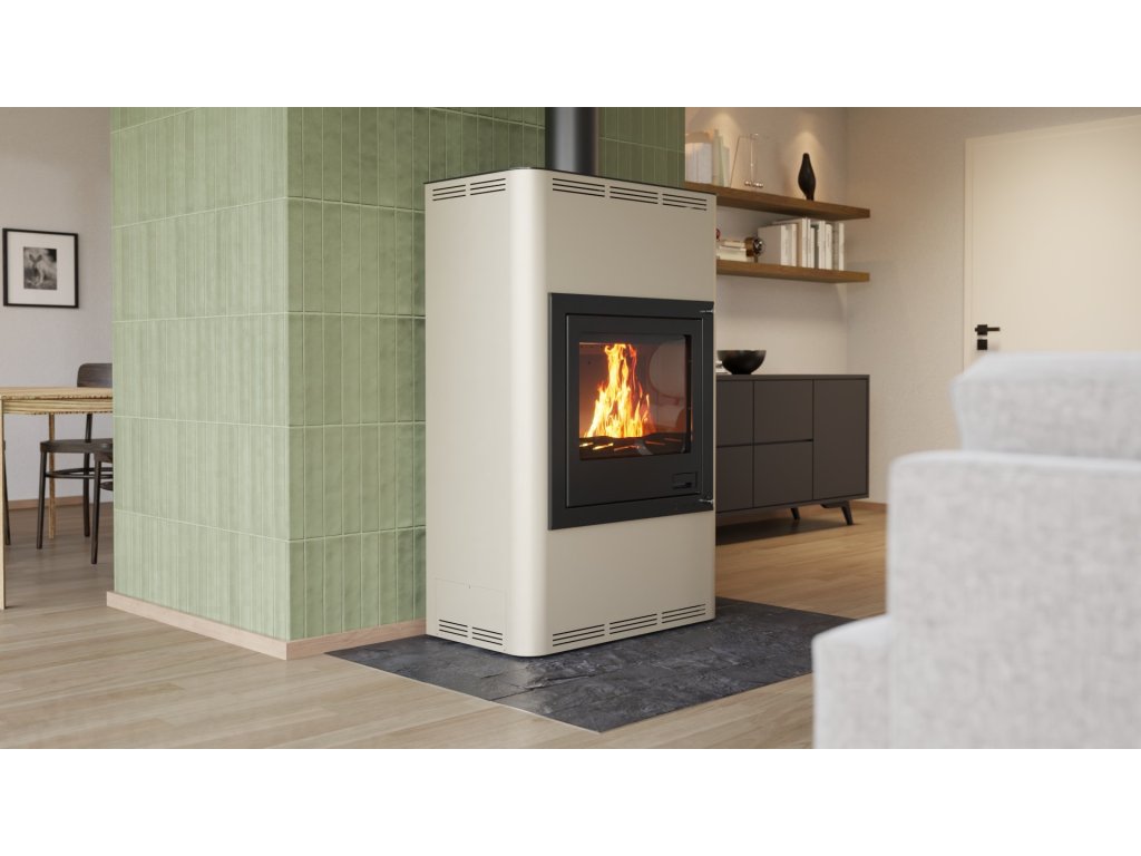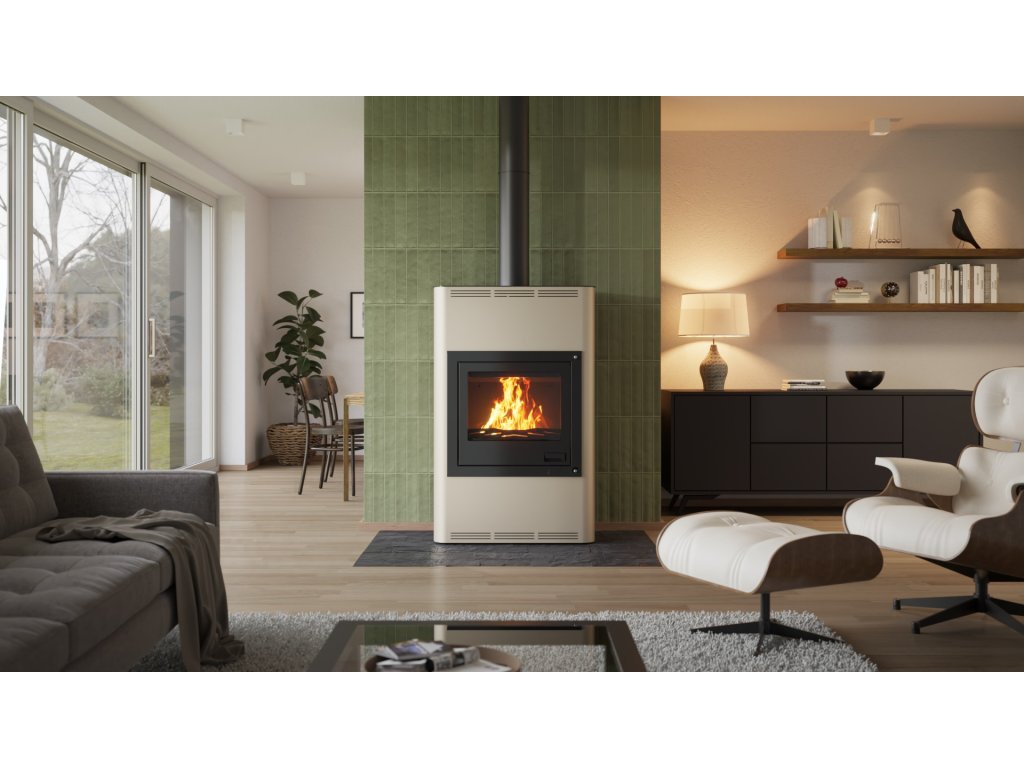 Krbová kamna Aquaflam 25 s výměníkem - creme, manuální regulace mají mnoho nadstandardních doplňků, čímž velmi výrazně předhání konkurenční výrobky. Inovativní prvky směřují především ke zlepšení obsluhy krbových kamen. Použitý materiál je pečlivě vybírán tak, aby dosahoval nejvyšší kvality. Pro bezpečnost zákazníka jsou krbová kamna vybavena standardně ochlazovací smyčkou a stále otevřeným terciálním vzduchem, který zabraňuje hromadění plynů ve spalovací komoře. Základní a automatická regulace navíc zavírá přívod vzduchu při přetopení. Krbová kamna AQUAFLAM dosáhly na nejpřísnější evropské normy jako jsou BImSchV – Stufe 2, 15a B-VG, DINplus, Flamme Verte.