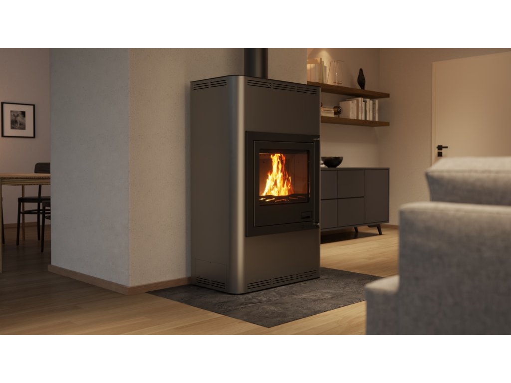 Krbová kamna Aquaflam 25 s výměníkem - šedá, manuální regulace mají mnoho nadstandardních doplňků, čímž velmi výrazně předhání konkurenční výrobky. Inovativní prvky směřují především ke zlepšení obsluhy krbových kamen. Použitý materiál je pečlivě vybírán tak, aby dosahoval nejvyšší kvality. Pro bezpečnost zákazníka jsou krbová kamna vybavena standardně ochlazovací smyčkou a stále otevřeným terciálním vzduchem, který zabraňuje hromadění plynů ve spalovací komoře. Základní a automatická regulace navíc zavírá přívod vzduchu při přetopení. Krbová kamna AQUAFLAM dosáhly na nejpřísnější evropské normy jako jsou BImSchV – Stufe 2, 15a B-VG, DINplus, Flamme Verte.
