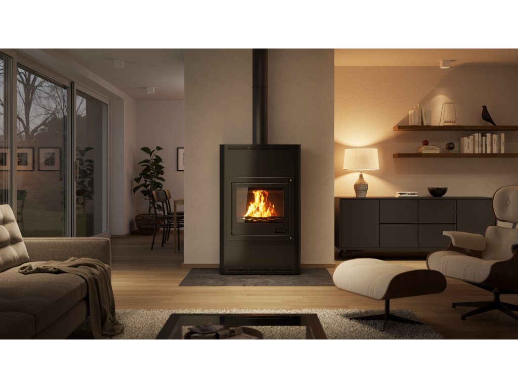 Krbová kamna Aquaflam 25 s výměníkem - černá, základní regulace mají mnoho nadstandardních doplňků, čímž velmi výrazně předhání konkurenční výrobky. Inovativní prvky směřují především ke zlepšení obsluhy krbových kamen. Použitý materiál je pečlivě vybírán tak, aby dosahoval nejvyšší kvality. Pro bezpečnost zákazníka jsou krbová kamna vybavena standardně ochlazovací smyčkou a stále otevřeným terciálním vzduchem, který zabraňuje hromadění plynů ve spalovací komoře. Základní a automatická regulace navíc zavírá přívod vzduchu při přetopení. Krbová kamna AQUAFLAM dosáhly na nejpřísnější evropské normy jako jsou BImSchV – Stufe 2, 15a B-VG, DINplus, Flamme Verte.