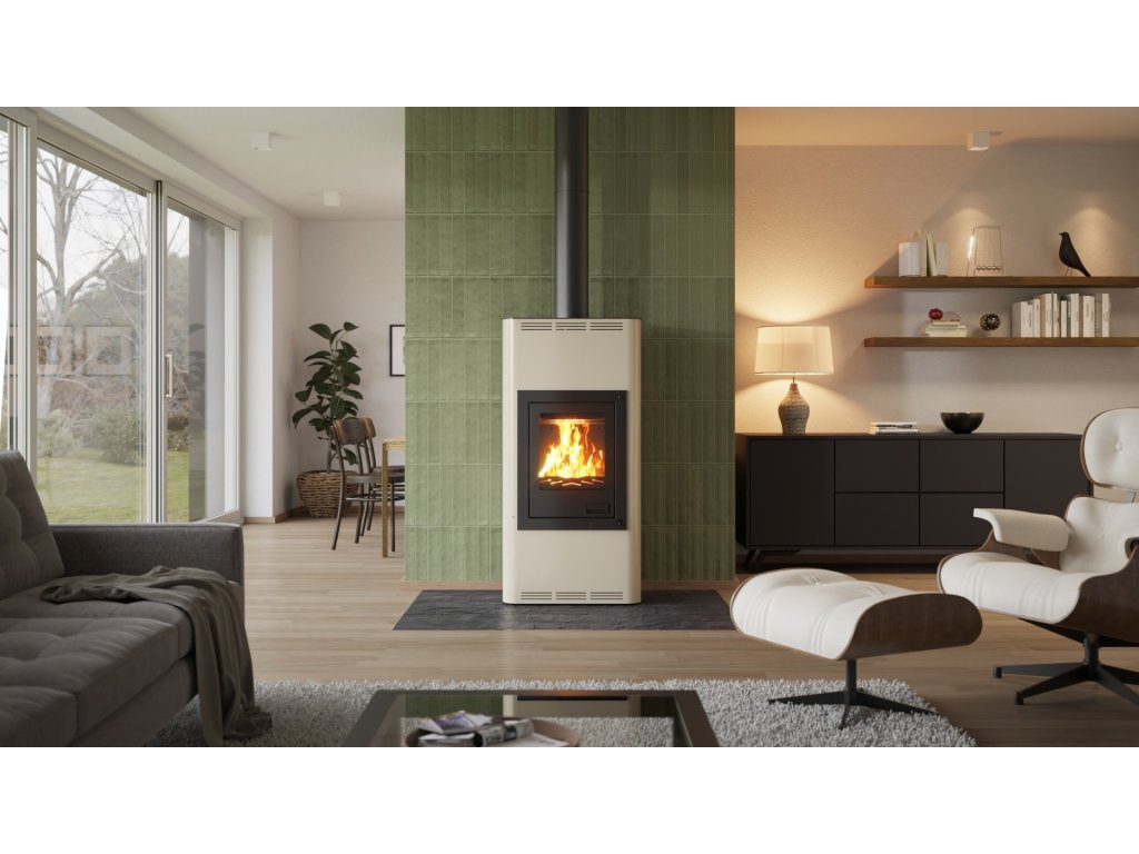 HS FLAMINGO krbová kamna AQUAFLAM 7 s výměníkem automatická regulace krémová