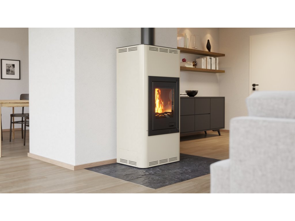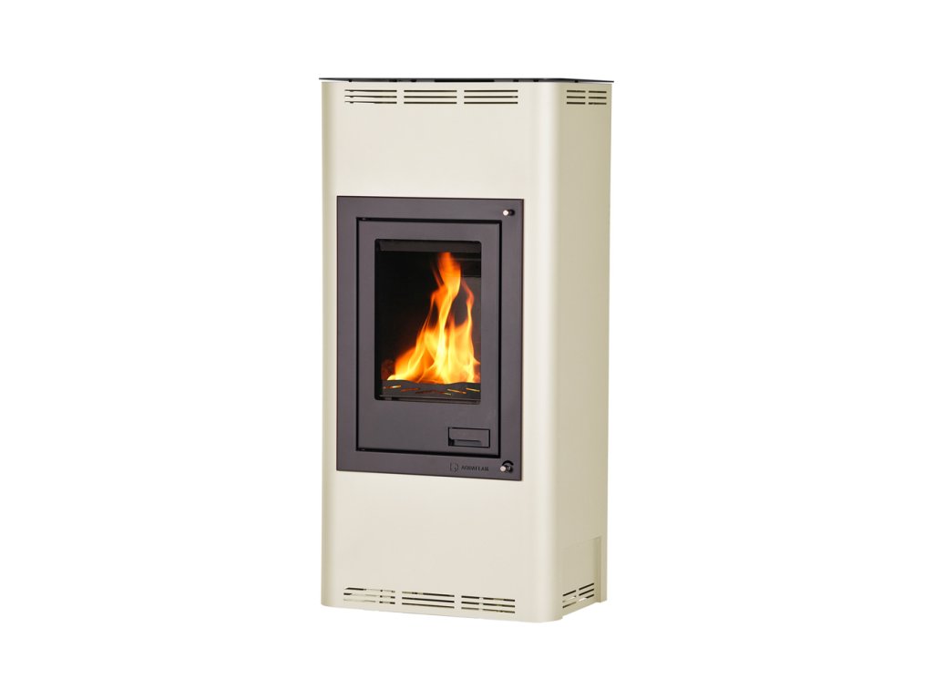 Krbová kamna AQUAFLAM® 7 s výměníkem – krémová, s automatickou regulací