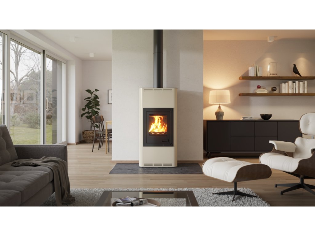 Krbová kamna AQUAFLAM ® 7 s výměníkem - krémová, automatická regulace
