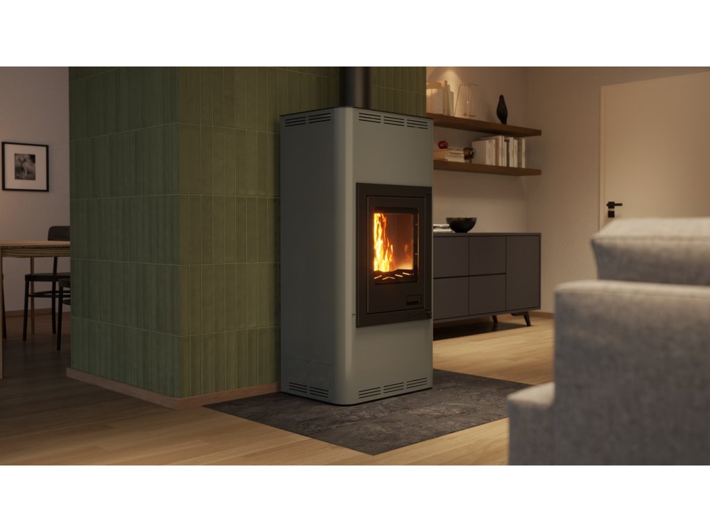 Krbová kamna Aquaflam 7 s výměníkem - šedá, automatická regulace mají mnoho nadstandardních doplňků, čímž velmi výrazně předhání konkurenční výrobky. Inovativní prvky směřují především ke zlepšení obsluhy krbových kamen. Použitý materiál je pečlivě vybírán tak, aby dosahoval nejvyšší kvality. Pro bezpečnost zákazníka jsou krbová kamna vybavena standardně ochlazovací smyčkou a stále otevřeným terciálním vzduchem, který zabraňuje hromadění plynů ve spalovací komoře. Základní a automatická regulace navíc zavírá přívod vzduchu při přetopení. Krbová kamna AQUAFLAM dosáhly na nejpřísnější evropské normy jako jsou BImSchV – Stufe 2, 15a B-VG, DINplus, Flamme Verte.