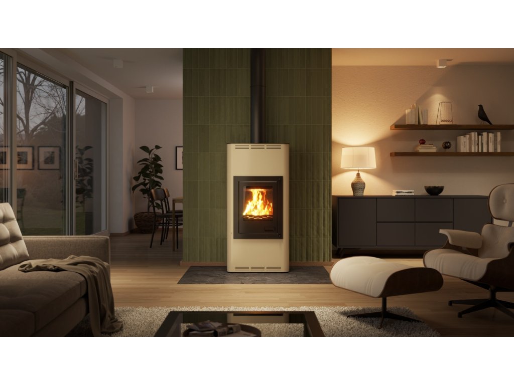 Krbová kamna Aquaflam 7 s výměníkem - creme, manuální regulace mají mnoho nadstandardních doplňků, čímž velmi výrazně předhání konkurenční výrobky. Inovativní prvky směřují především ke zlepšení obsluhy krbových kamen. Použitý materiál je pečlivě vybírán tak, aby dosahoval nejvyšší kvality. Pro bezpečnost zákazníka jsou krbová kamna vybavena standardně ochlazovací smyčkou a stále otevřeným terciálním vzduchem, který zabraňuje hromadění plynů ve spalovací komoře. Základní a automatická regulace navíc zavírá přívod vzduchu při přetopení. Krbová kamna AQUAFLAM dosáhly na nejpřísnější evropské normy jako jsou BImSchV – Stufe 2, 15a B-VG, DINplus, Flamme Verte.