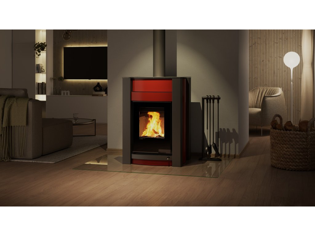 HS FLAMINGO krbová kamna AQUAFLAM VARIO KALMAR 11 kW - červená (bez výměníku)