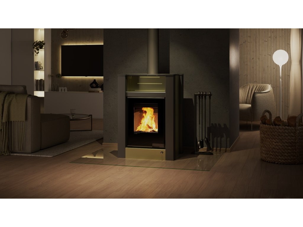 HS FLAMINGO krbová kamna AQUAFLAM VARIO LEND 11/5 kW - olivová - elektronická regulace