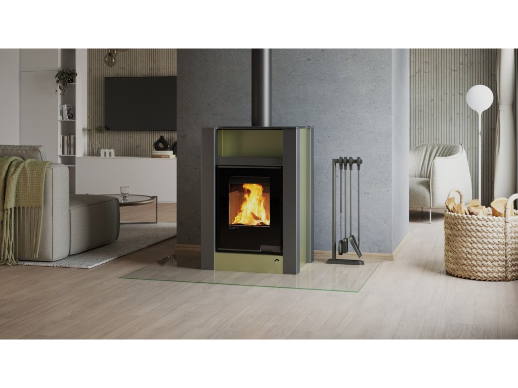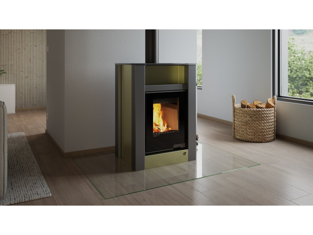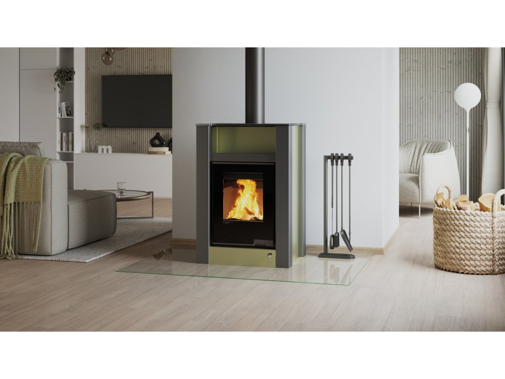 HS FLAMINGO krbová kamna AQUAFLAM VARIO LEND 11/5 kW - olivová