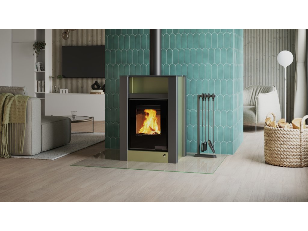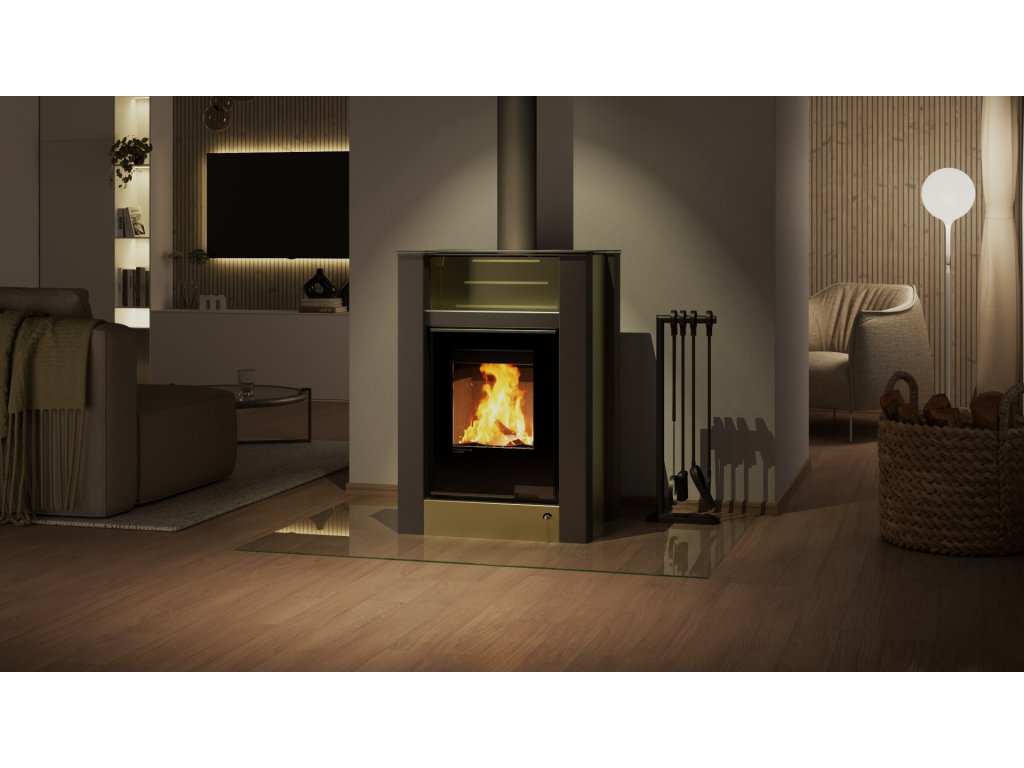 HS FLAMINGO krbová kamna AQUAFLAM VARIO LEND 11/7 kW - olivová