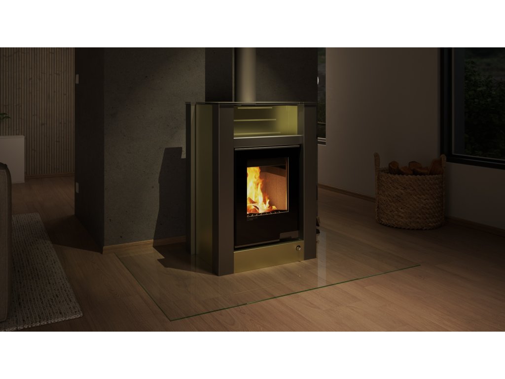 - Výběr výkonu (Krbová kamna jsou standardně dodávána s teplovodním výměníkem. Zákazník má možnost výběru mezi dvěma výkony: 3 – 9 kW / 5 – 11kW.)