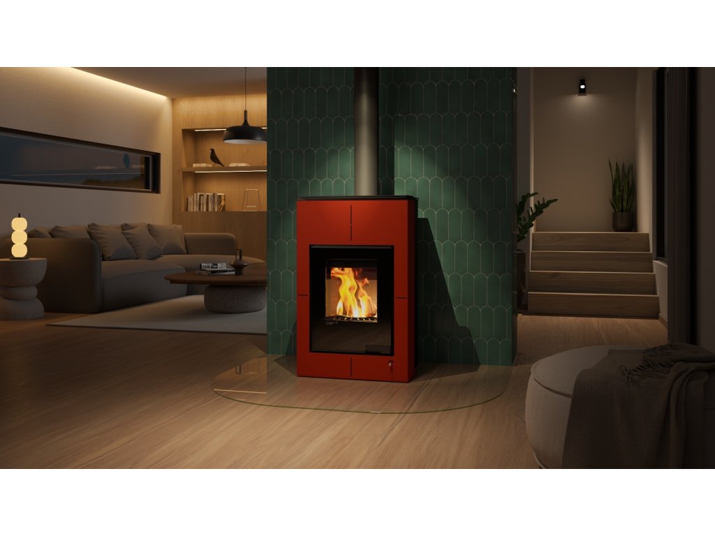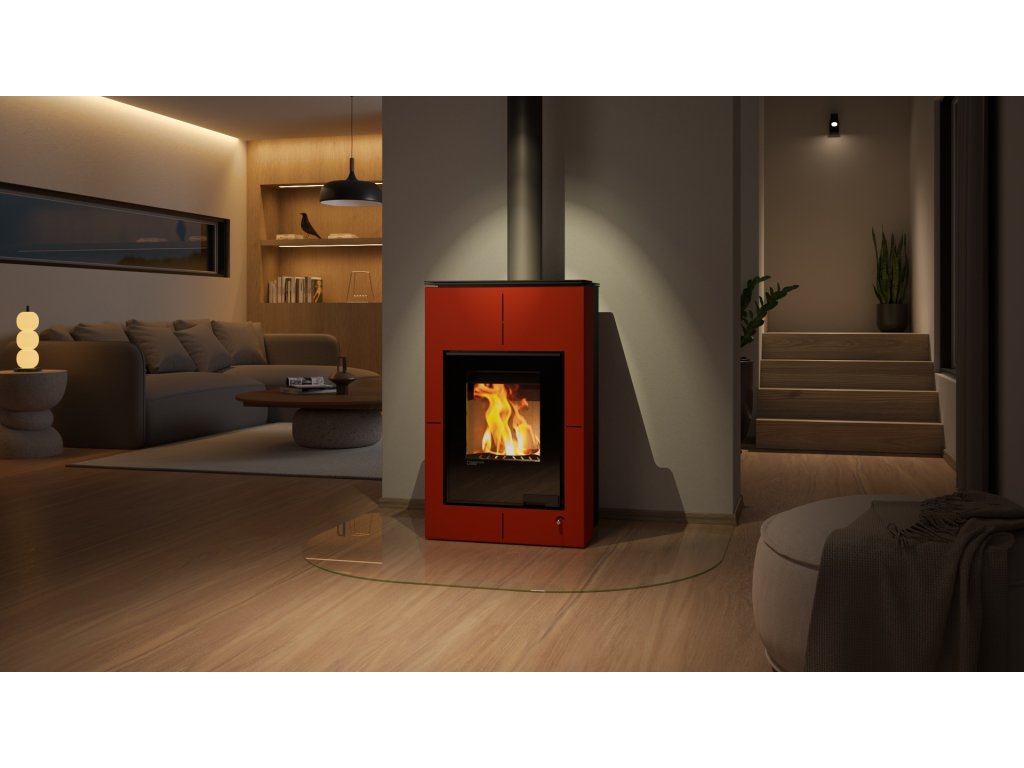 HS FLAMINGO krbová kamna AQUAFLAM VARIO SAPORO 11/5 kW - červená - elektronická regulace