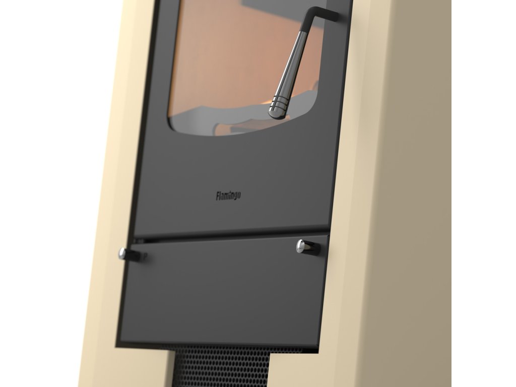 Krbová kamna HS Flamingo Espo I Creme jsou díky své vysoké kvalitě a velmi rozumné ceně velice žádaným artiklem teplovzdušných kamen na Českém i Evropském trhu. Krbová kamna HS Flamingo nabízejí standardní možnost externího napojení přívodu vzduchu. Pro co nejefektivnější spalování je přivedený vzduch dále rozdělen na primární (pod rošt), sekundární na oplach skla a terciální pro podporu spalování plynných částic. Komora je vykonstruovaná tak, aby byla dosažená vysoká účinnost a malá spotřeba paliva, která činí průměrně 2kg na hodinu. Vnitřek spalovacího prostoru tvoří český šamot a litinový rošt. Díky tomu je komora téměř nesmrtelná. Kamna jsou vyrobena z 3 a 5 mm plechu, kde 5mm plech je použit převážně na spalovací komoru. Díky tomu poskytujeme na krbová kamna záruku 5 let.