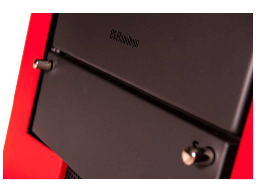 Krbová kamna HS Flamingo Espo II Červená jsou díky své vysoké kvalitě a velmi rozumné ceně velice žádaným artiklem teplovzdušných kamen na Českém i Evropském trhu. Krbová kamna HS Flamingo nabízejí standardní možnost externího napojení přívodu vzduchu. Pro co nejefektivnější spalování je přivedený vzduch dále rozdělen na primární (pod rošt), sekundární na oplach skla a terciální pro podporu spalování plynných částic. Komora je vykonstruovaná tak, aby byla dosažená vysoká účinnost a malá spotřeba paliva, která činí průměrně 2kg na hodinu. Vnitřek spalovacího prostoru tvoří český šamot a litinový rošt. Díky tomu je komora téměř nesmrtelná. Kamna jsou vyrobena z 3 a 5 mm plechu, kde 5mm plech je použit převážně na spalovací komoru. Díky tomu poskytujeme na krbová kamna záruku 5 let.