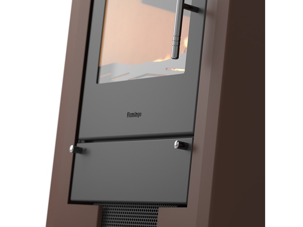 Krbová kamna Espo II hnědá jsou díky své vysoké kvalitě a velmi rozumné ceně velice žádaným artiklem teplovzdušných kamen na Českém i Evropském trhu. Krbová kamna HS Flamingo nabízejí standardní možnost externího napojení přívodu vzduchu. Pro co nejefektivnější spalování je přivedený vzduch dále rozdělen na primární (pod rošt), sekundární na oplach skla a terciální pro podporu spalování plynných částic. Komora je vykonstruovaná tak, aby byla dosažená vysoká účinnost a malá spotřeba paliva, která činí průměrně 2kg na hodinu. Vnitřek spalovacího prostoru tvoří český šamot a litinový rošt. Díky tomu je komora téměř nesmrtelná. Kamna jsou vyrobena z 3 a 5 mm plechu, kde 5mm plech je použit převážně na spalovací komoru. Díky tomu poskytujeme na krbová kamna záruku 5 let.