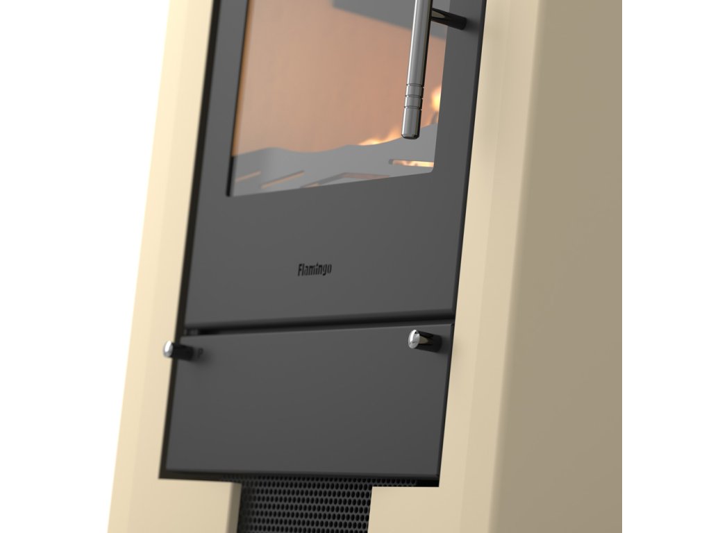 Krbová kamna HS Flamingo Espo II Creme jsou díky své vysoké kvalitě a velmi rozumné ceně velice žádaným artiklem teplovzdušných kamen na Českém i Evropském trhu. Krbová kamna HS Flamingo nabízejí standardní možnost externího napojení přívodu vzduchu. Pro co nejefektivnější spalování je přivedený vzduch dále rozdělen na primární (pod rošt), sekundární na oplach skla a terciální pro podporu spalování plynných částic. Komora je vykonstruovaná tak, aby byla dosažená vysoká účinnost a malá spotřeba paliva, která činí průměrně 2kg na hodinu. Vnitřek spalovacího prostoru tvoří český šamot a litinový rošt. Díky tomu je komora téměř nesmrtelná. Kamna jsou vyrobena z 3 a 5 mm plechu, kde 5mm plech je použit převážně na spalovací komoru. Díky tomu poskytujeme na krbová kamna záruku 5 let.