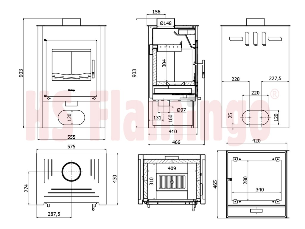- spalovací komora těchto kamen je vyrobena z 5mm ocelového plechu