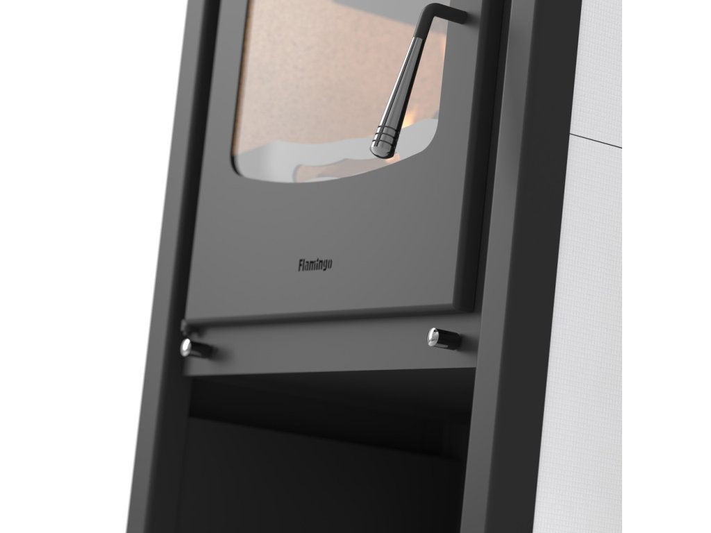 Krbová kamna HS Flamingo MELAND jsou díky své vysoké kvalitě a velmi rozumné ceně velice žádaným artiklem teplovzdušných kamen na Českém i Evropském trhu. Krbová kamna HS Flamingo nabízejí standardní možnost externího napojení přívodu vzduchu. Pro co nejefektivnější spalování je přivedený vzduch dále rozdělen na primární (pod rošt), sekundární na oplach skla a terciální pro podporu spalování plynných částic. Komora je vykonstruovaná tak, aby byla dosažená vysoká účinnost a malá spotřeba paliva, která činí průměrně 2kg na hodinu. Vnitřek spalovacího prostoru tvoří český šamot a litinový rošt. Díky tomu je komora téměř nesmrtelná. Kamna jsou vyrobena z 3 a 5 mm plechu, kde 5mm plech je použit převážně na spalovací komoru. Díky tomu poskytujeme na krbová kamna záruku 5 let.