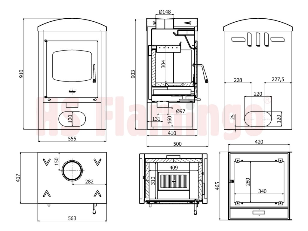 Krbová kamna HS Flamingo STAVANGER BLACK jsou díky své vysoké kvalitě a velmi rozumné ceně velice žádaným artiklem teplovzdušných kamen na Českém i Evropském trhu. Krbová kamna HS Flamingo nabízejí standardní možnost externího napojení přívodu vzduchu. Pro co nejefektivnější spalování je přivedený vzduch dále rozdělen na primární (pod rošt), sekundární na oplach skla a terciální pro podporu spalování plynných částic. Komora je vykonstruovaná tak, aby byla dosažená vysoká účinnost a malá spotřeba paliva, která činí průměrně 2kg na hodinu. Vnitřek spalovacího prostoru tvoří český šamot a litinový rošt. Díky tomu je komora téměř nesmrtelná. Kamna jsou vyrobena z 3 a 5 mm plechu, kde 5mm plech je použit převážně na spalovací komoru. Díky tomu poskytujeme na krbová kamna záruku 5 let.