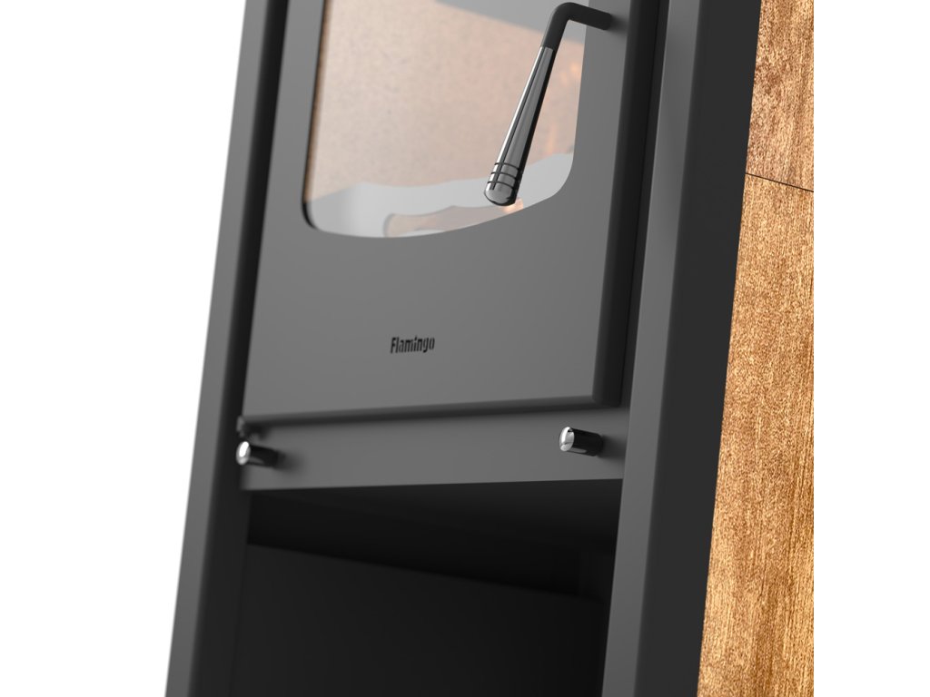 Krbová kamna HS Flamingo VEGA jsou díky své vysoké kvalitě a velmi rozumné ceně velice žádaným artiklem teplovzdušných kamen na Českém i Evropském trhu. Krbová kamna HS Flamingo nabízejí standardní možnost externího napojení přívodu vzduchu. Pro co nejefektivnější spalování je přivedený vzduch dále rozdělen na primární (pod rošt), sekundární na oplach skla a terciální pro podporu spalování plynných částic. Komora je vykonstruovaná tak, aby byla dosažená vysoká účinnost a malá spotřeba paliva, která činí průměrně 2kg na hodinu. Vnitřek spalovacího prostoru tvoří český šamot a litinový rošt. Díky tomu je komora téměř nesmrtelná. Kamna jsou vyrobena z 3 a 5 mm plechu, kde 5mm plech je použit převážně na spalovací komoru. Díky tomu poskytujeme na krbová kamna záruku 5 let.