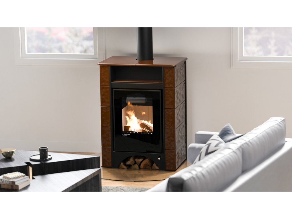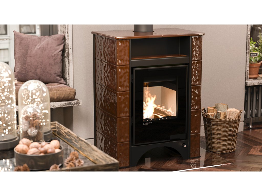 Kachlová kamna AQUAFLAM VARIO PERU 11/5kW, kachle hnědá, elektronická regulace