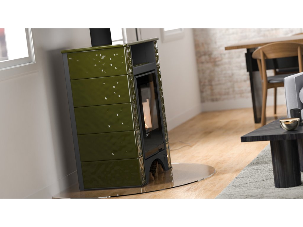 Kachlová kamna AQUAFLAM VARIO PERU 11/5kW, kachle zelená