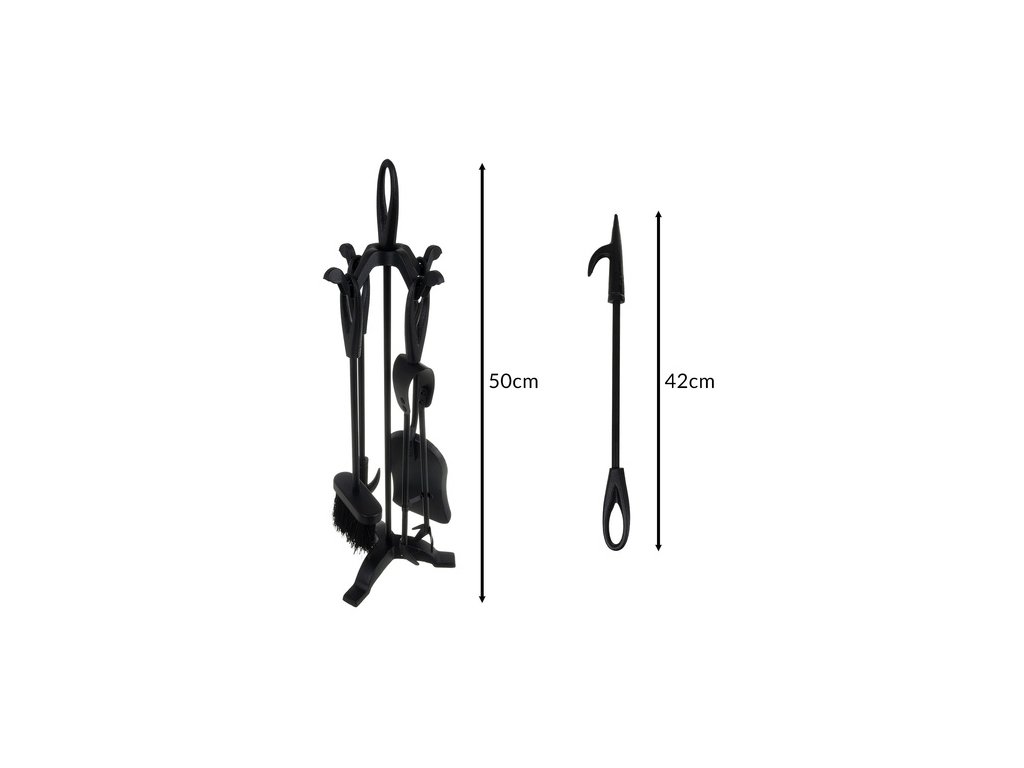 - Délka nástrojů (s rukojetí): 42 cm (pohrabáč, lopatka, smetáček, kleště)