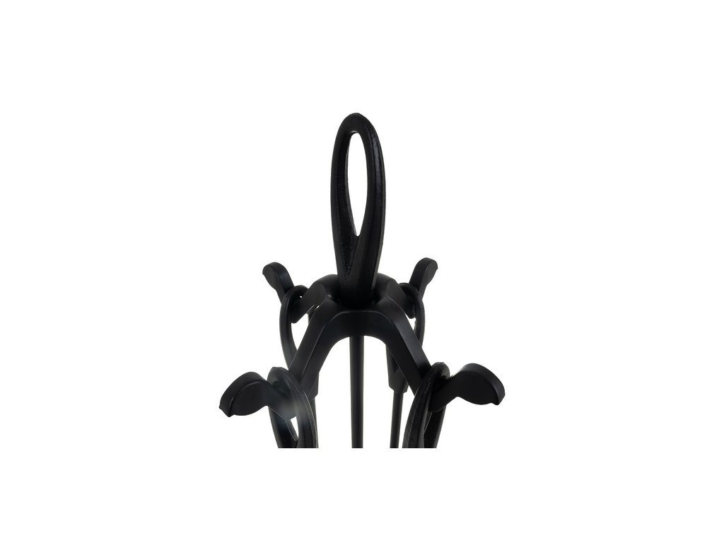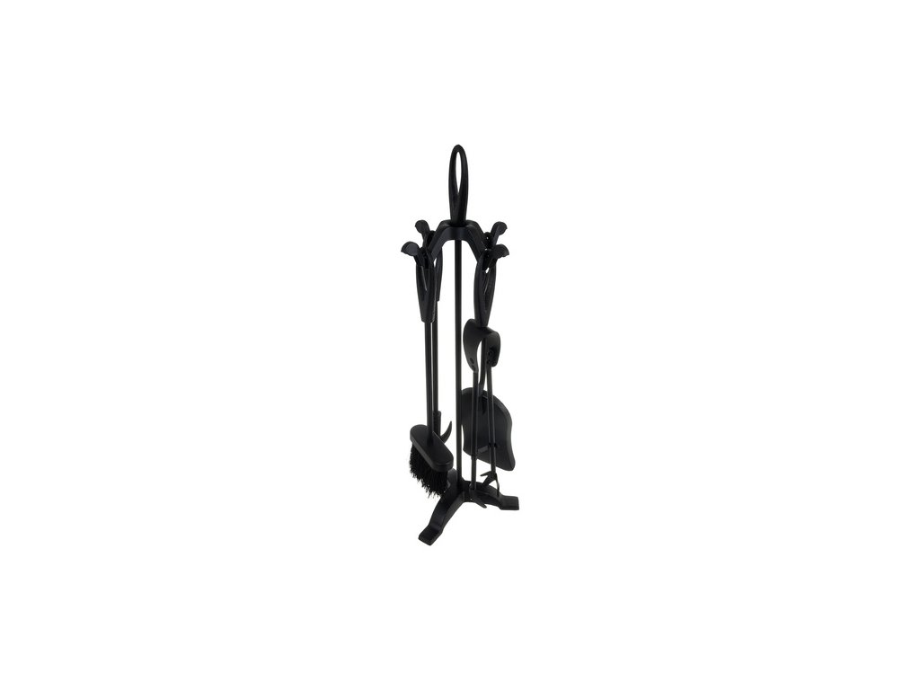 Elegantní vintage sada krbového nářadí KAMINER nabízí kompletní výbavu pro obsluhu krbu, kamen, grilu i ohniště. Nástroje z nerezové oceli s matně černou povrchovou úpravou odolávají vysokým teplotám, kovové kulaté rukojeti dobře sedí v dlani a stabilní stojan se třemi železnými nožkami zajišťuje bezpečné a přehledné uložení celé sady.