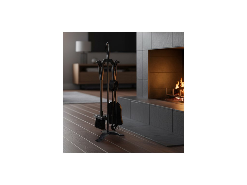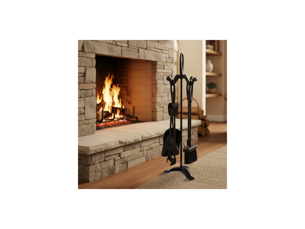 - Kompletní sada 5v1 – lopatka, smetáček, pohrabáč, kleště a stojan přehledně na jednom místě