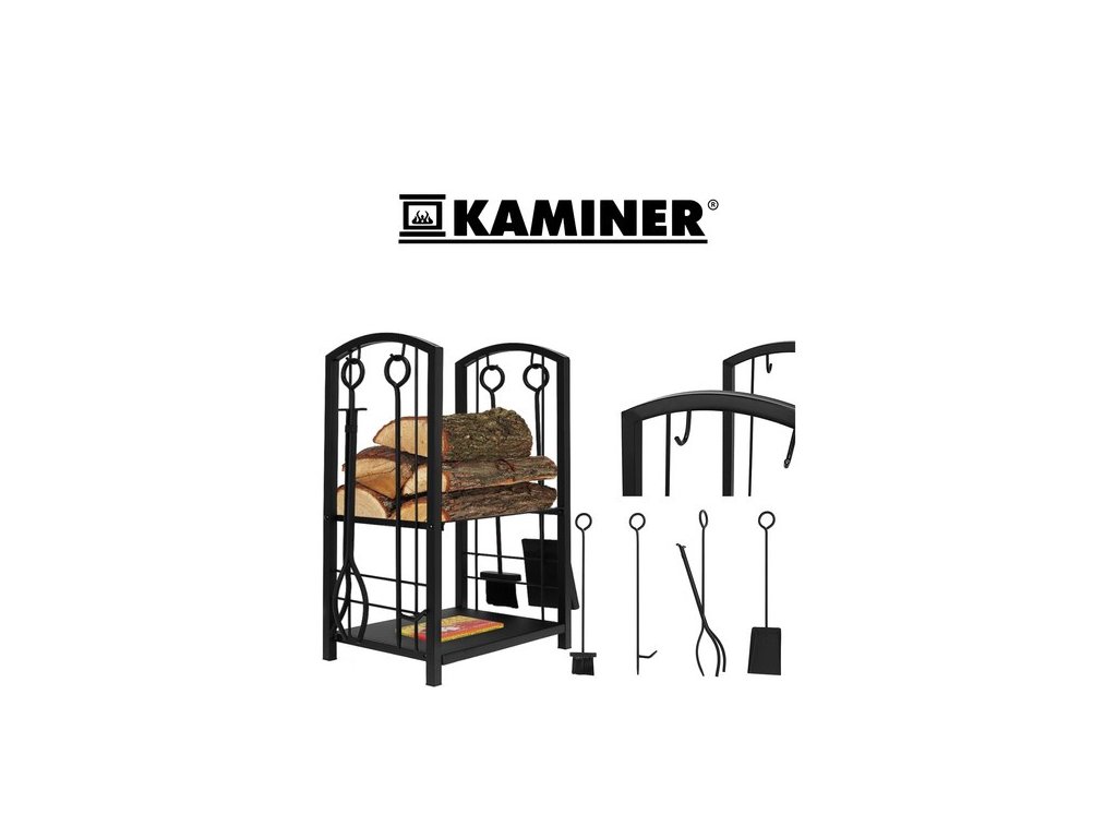 KAMINER PK011 Koš na dřevo a krbové nářadí 30 × 40 × 73 cm