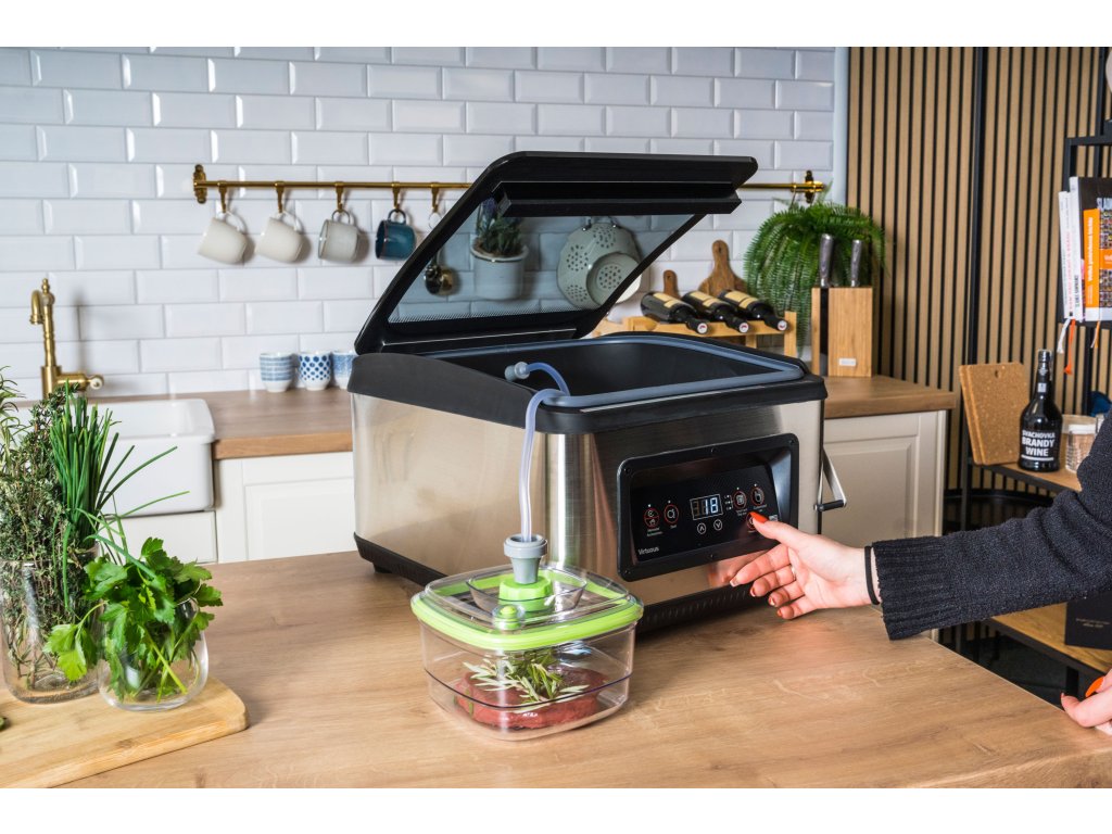 Jak uchovat potraviny déle čerstvé? Jak mít v lednici stále svěží ovoce a zeleninu, prodloužit trvanlivost masa a hotových jídel, zlepšit chuť potravin a zároveň šetřit místem i penězi? Odpovědí na tyto otázky je chytrá vakuovačka G21 Virtuous, která předčí všechna očekávání. Vakuuje nejen pevné, ale taky tekuté potraviny, vzduch odsaje ve vlastní vakuovací komoře nebo z nádob i ze sáčků, dokonce vám zavakuuje i zátky od lahví. Tím ovšem výčet předností zdaleka nekončí.