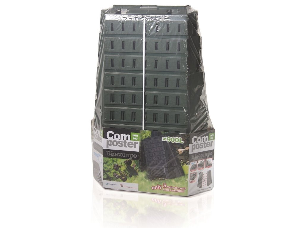 900l kompostér BIOCOMPO v černé barvě je odolný vlivům počasí. Nemá dno, aby přímý styk s půdou umožnil volný přístup červům a žížalám podílejícich se na tvorbě humusu. Zabere minimální prostor a velmi snadno jej složíte.