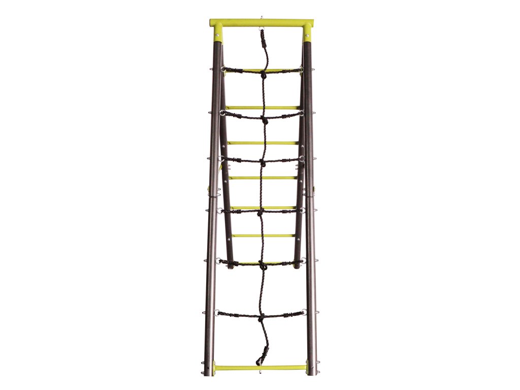 Díky kovovým okům na ni snadno zavěsíte houpačky nebo houpadla pro batolata či houpací kruh. Mezi dvěma bočními vzpěrami je žebřík a lezecká síť z PE plastu, třetí pár vzpěr je připraven pro připevnění skluzavky. Z bezpečnostních důvodů musí být konstrukce zahradní houpačky ukotvena k zemi. V balení proto najdete i kotvicí háky a návod pro správné a bezpečné ukotvení.