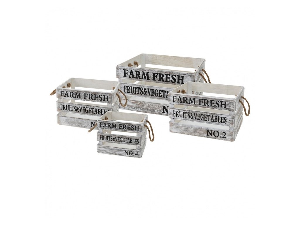 Sada 4 dřevěných beden na ovoce/zeleninu, Farm Fresh