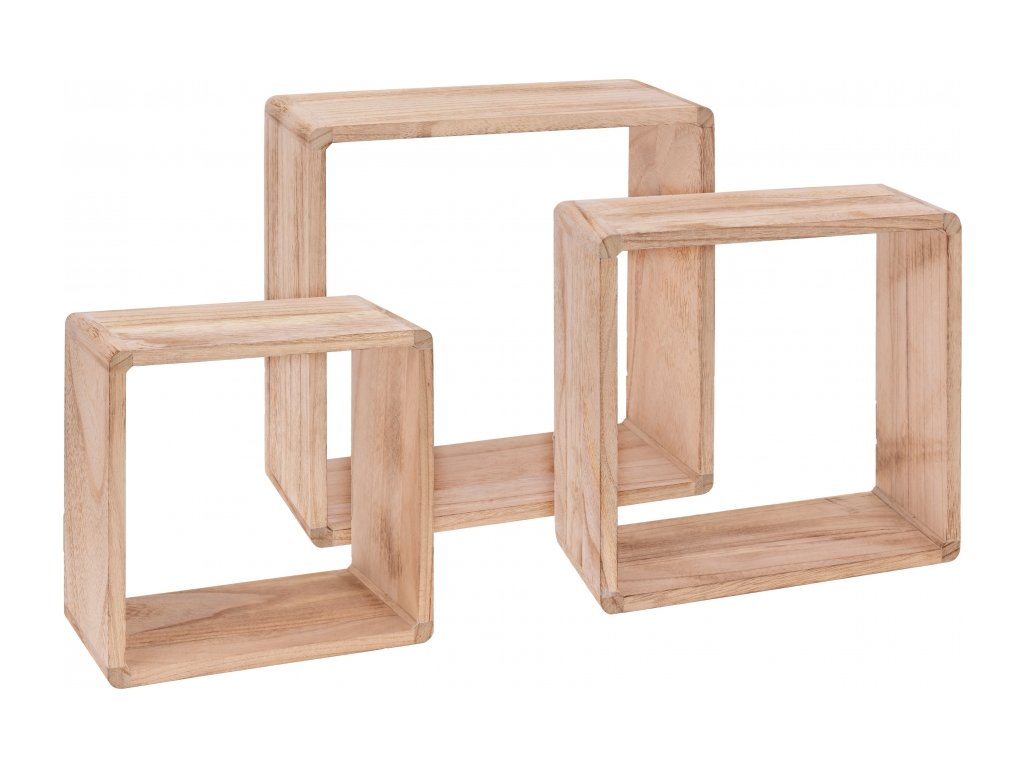 Sada 3 ks dřevěných dekorativních polic 30 x 30 x 12 cm, 27 x 27 x 12 cm a 24 x 24 x 12 cm. Police mají moderní jednoduchý tvar a praktický design