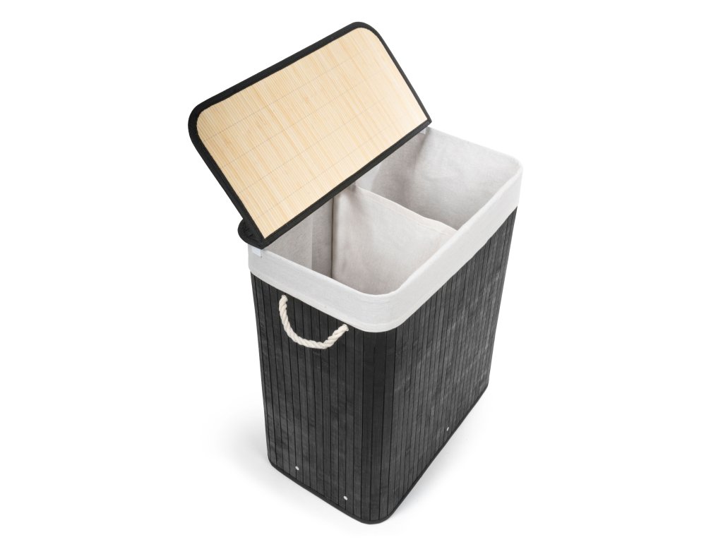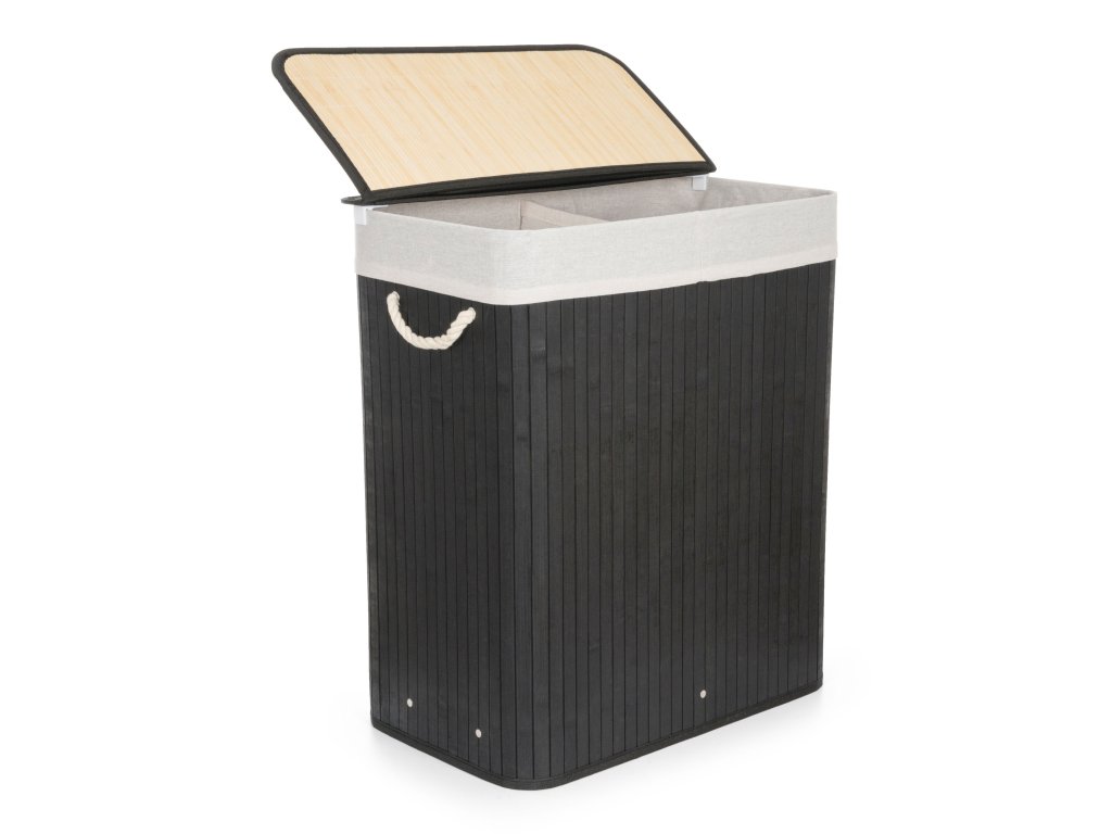 Koš na prádlo G21 105 l s rozdělovačem, bambusový černý s bílým košem