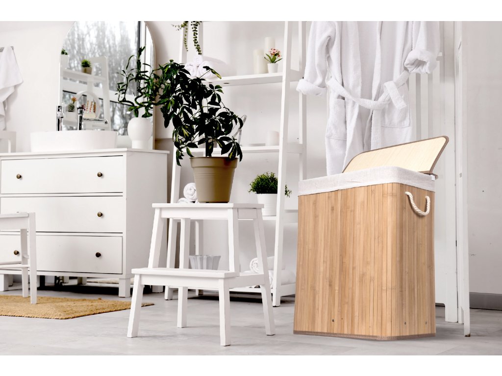 Bambus je překvapivě lehký, takže koš můžete snadno přenášet. Zároveň je ale dostatečně pevný, takže unese i těžkou zátěž, když je naplněn prádlem. Jednou z výborných vlastností bambusového dřeva je navíc jeho velká odolnost vůči vlhkosti. Pokud tedy hledáte prádelní koš, který nepodlehne vlhkému prostředí koupelny, je pro vás bambusový koš s objemem 105 l na špinavé prádlo jasnou volbou. Jeho další předností je přirozená odolnost vůči bakteriím a plísním, což je u určení koše na špinavé prádlo velmi výhodné.