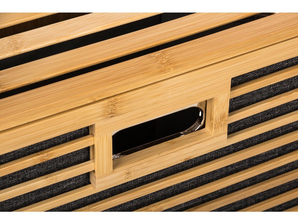 Bambusový koupelnový regál s košem na prádlo dodává interiéru příjemný přírodní dojem. Jeho jemné a teplé barvy mohou oživit a doplnit jakýkoliv prostor bez ohledu na jeho styl – skvěle ladí s rustikálním i moderním nebo minimalistickým interiérem, přizpůsobí se stylu vašeho domova.