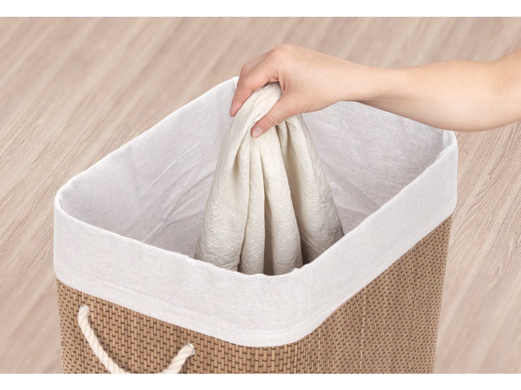 Bambusový koš s pratelnou látkovou vložkou přidává interiéru příjemný přírodní dojem. Jeho jemné a teplé barvy mohou oživit a doplnit jakýkoliv prostor bez ohledu na jeho styl – skvěle ladí s rustikálním i moderním nebo minimalistickým interiérem, přizpůsobí se stylu vašeho domova.
