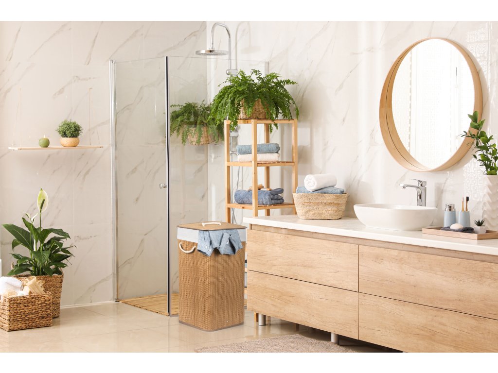 Bambus je překvapivě lehký, takže koš můžete snadno přenášet. Zároveň je ale dostatečně pevný, takže unese i těžkou zátěž, když je naplněn prádlem. Jednou z výborných vlastností bambusového dřeva je navíc jeho velká odolnost vůči vlhkosti. Pokud tedy hledáte prádelní koš, který nepodlehne vlhkému prostředí koupelny, je pro vás bambusový koš s objemem 72 l na špinavé prádlo jasnou volbou. Jeho další předností je přirozená odolnost vůči bakteriím a plísním, což je u určení koše na špinavé prádlo velmi výhodné.