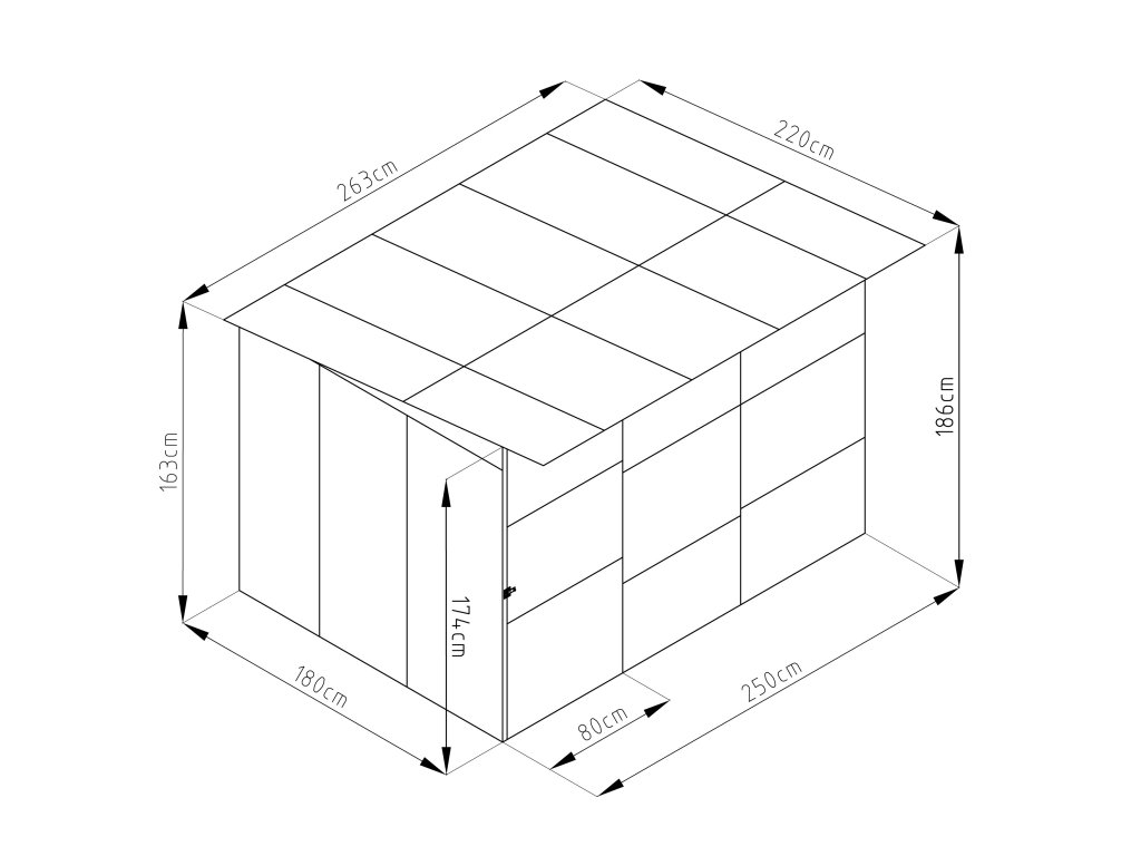 - Rozměry - vnější (Š x V x H): 260 x 186 x 220 cm