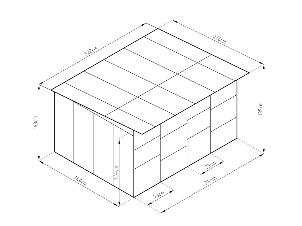 - Rozměry - vnější (Š x V x H): 322 x 186 x 275 cm