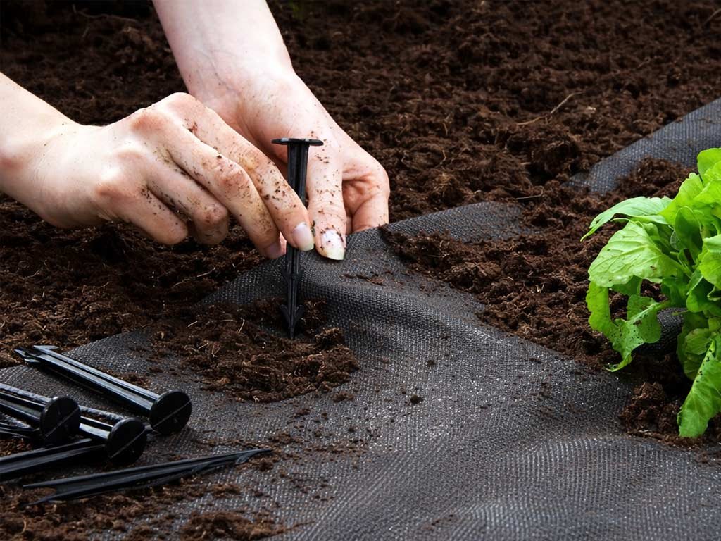 - k ukotvení netkané i tkané textilie při natahování na záhonky