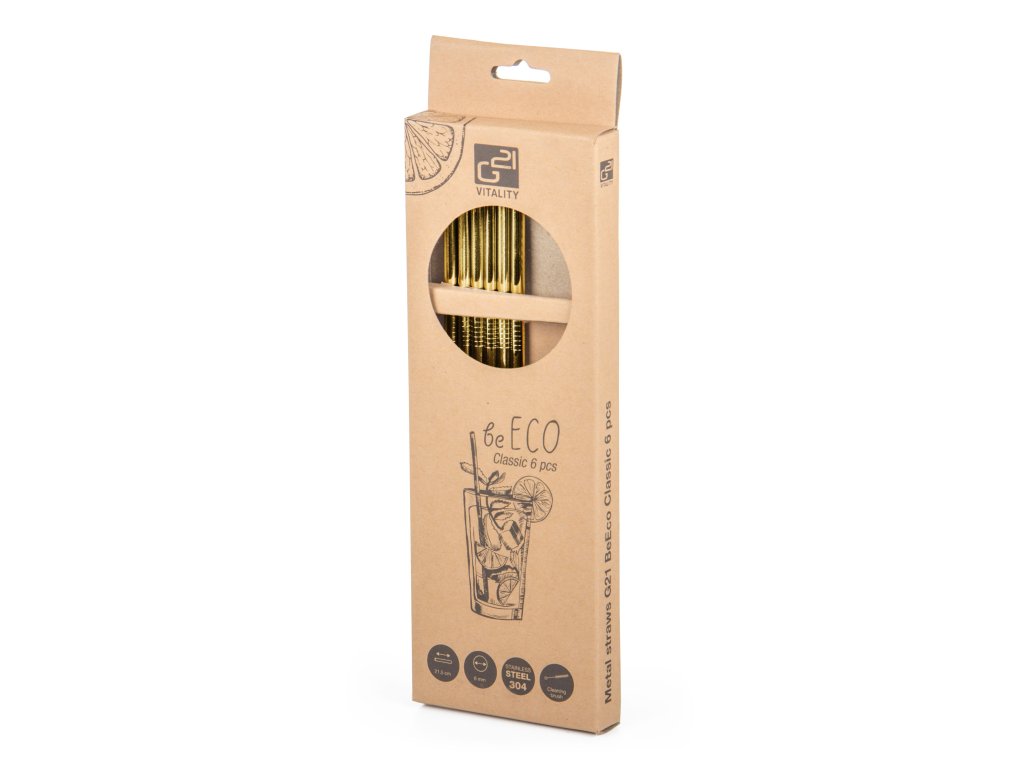 Kovová brčka G21 BeEco Classic 6 ks zlatá, rovná + kartáček na čištění
