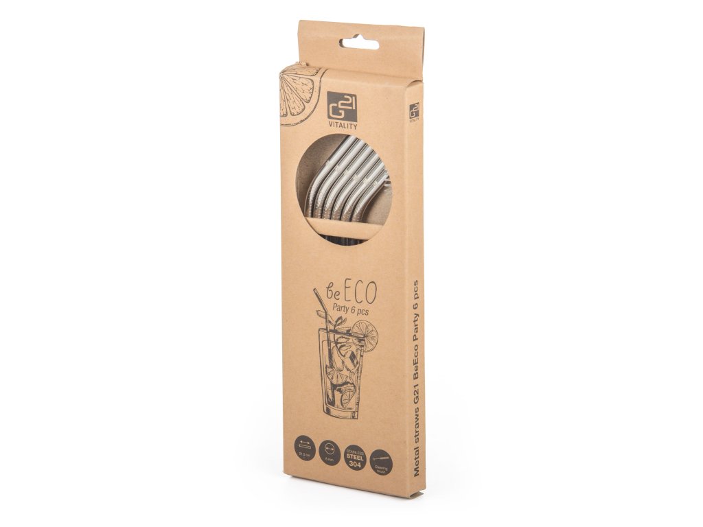 Pořiďte si elegantní, odolné, stylové a především ekologické slámky na pití z nerezu. V sadě najdete 6 zahnutých nerezových brček G21 BeEco Party o průměru 6 mm a délce 21,5 cm a kartáček na čištění. V nabídce máme i brčka rovná, prohlédnout si je můžete zde.