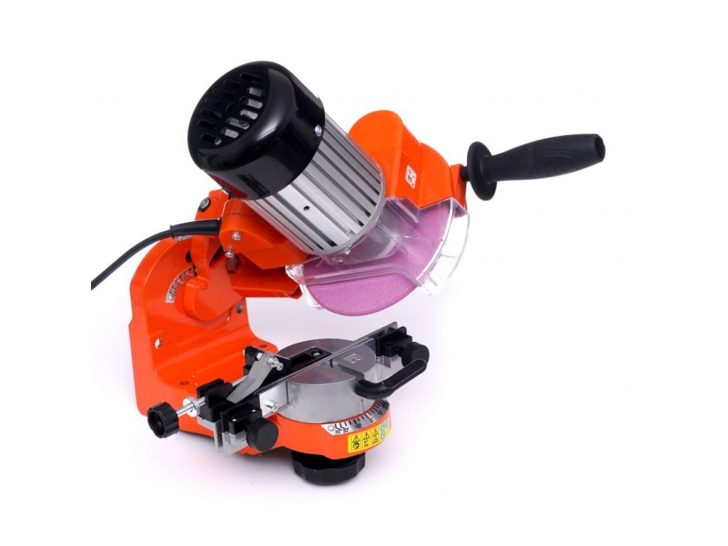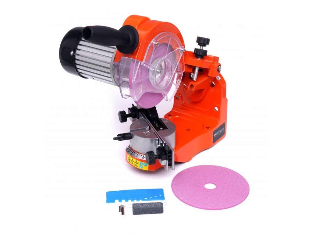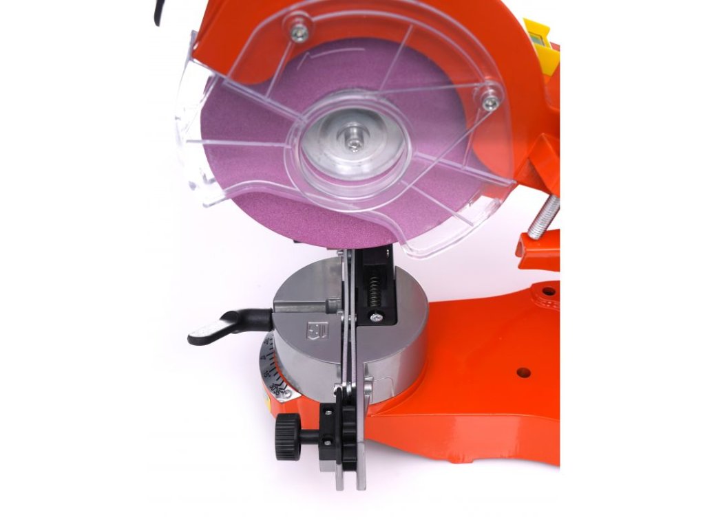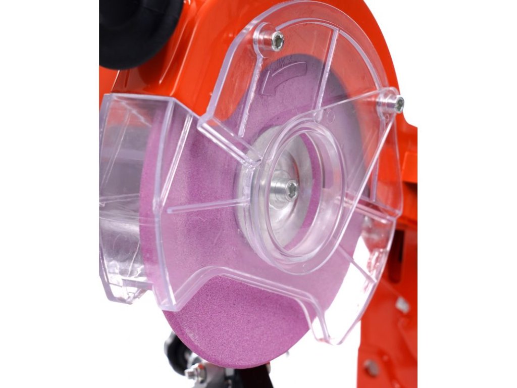 Stroj je vybaven standardním brusným kotoučem o průměru 100 mm a tloušťce 3,2 mm, navíc je vybaven omezovačem hloubky broušení, takže ostření řetězu lze provádět s větší přesností