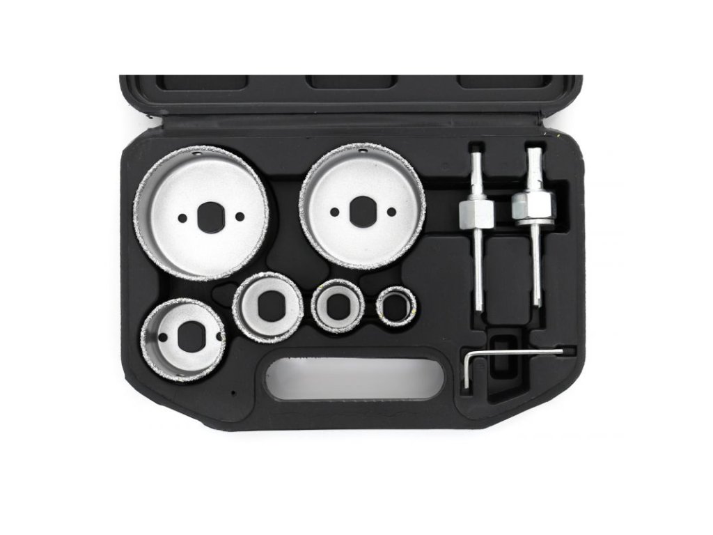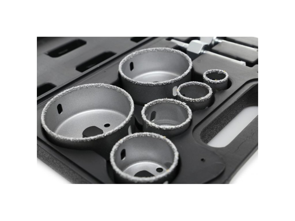 - 6x vrtací korunka (22, 29, 38, 44, 67, 73 mm)