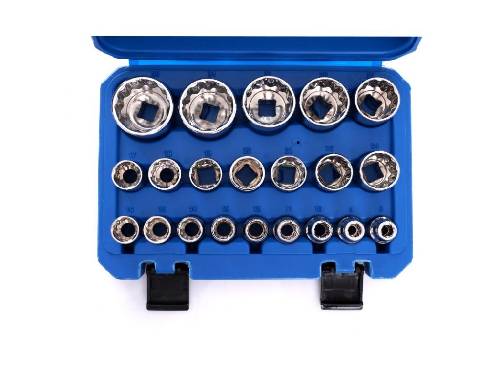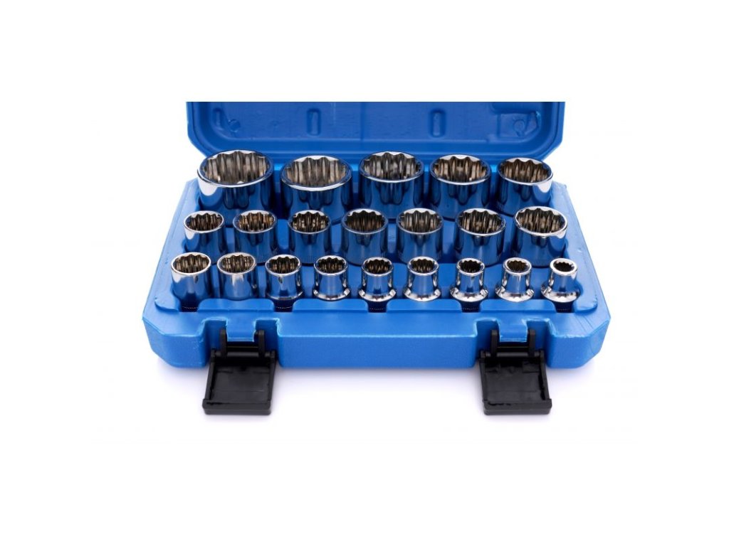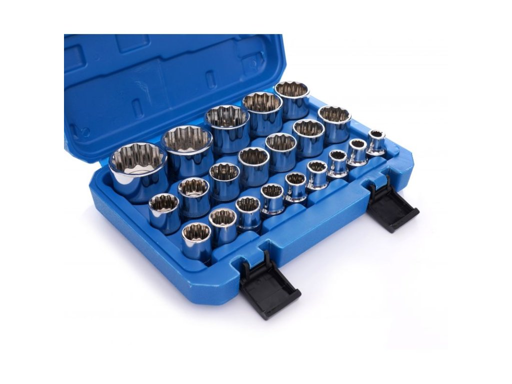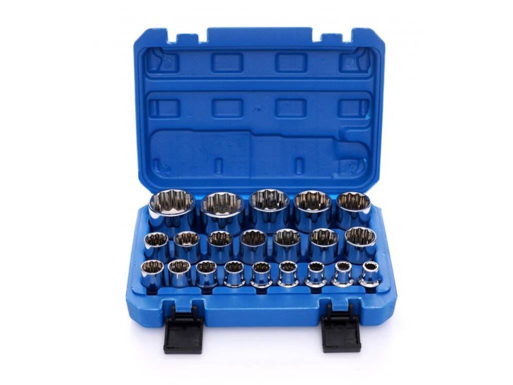 Sada specializovaných 12 bodových nástrčných klíčů Kraft&Dele umožňuje odšroubovat několik typů šroubů: šestihranné, dvanáctiúhelníkové, profilové šrouby Torx-E a palcové šrouby