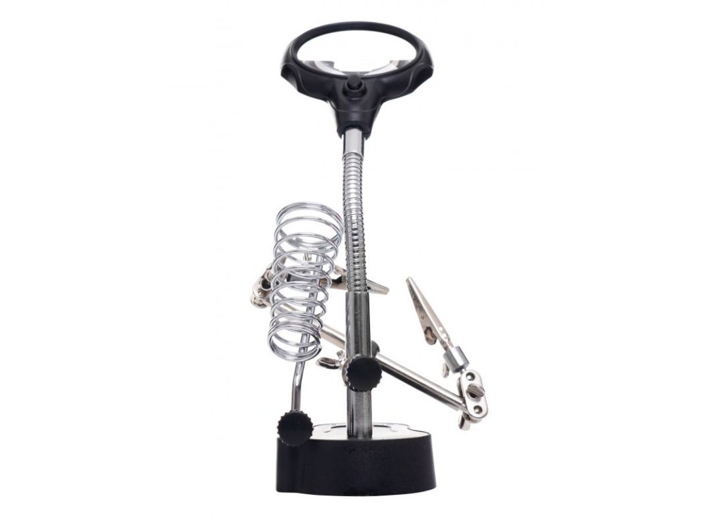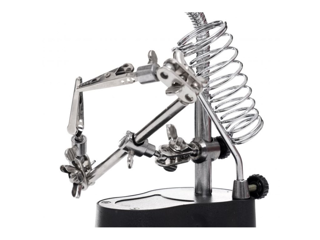 - Flexibilní ramínka s krokodýlky – drží součástky v požadované poloze pro snadné pájení a opravy.