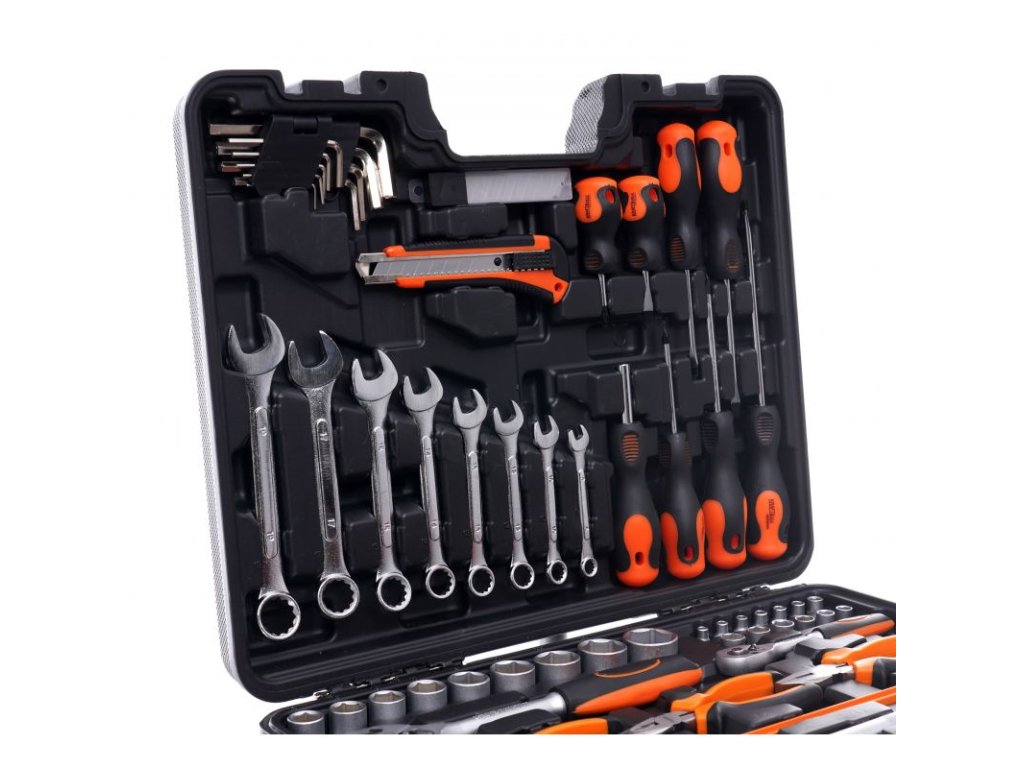 Nástroje se vyznačují solidním zpracováním, odolnými materiály a praktickým pouzdrem, ve kterém má každý nástroj své místo