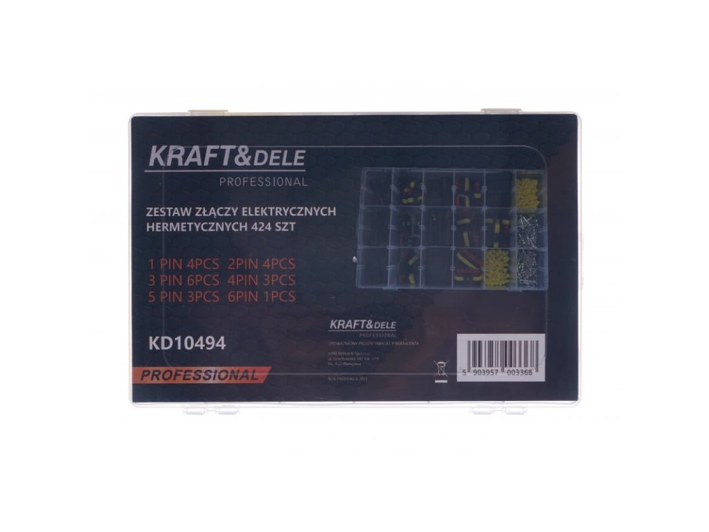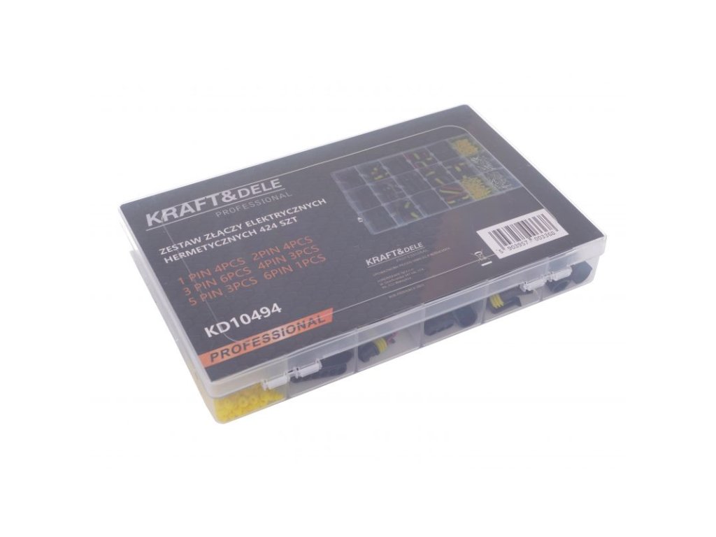 Automobilové konektory značky Kraft & Dele jsou dodávány v praktickém, pevném obalu pro snadné rozdělení na jednotlivé typy konektorů
